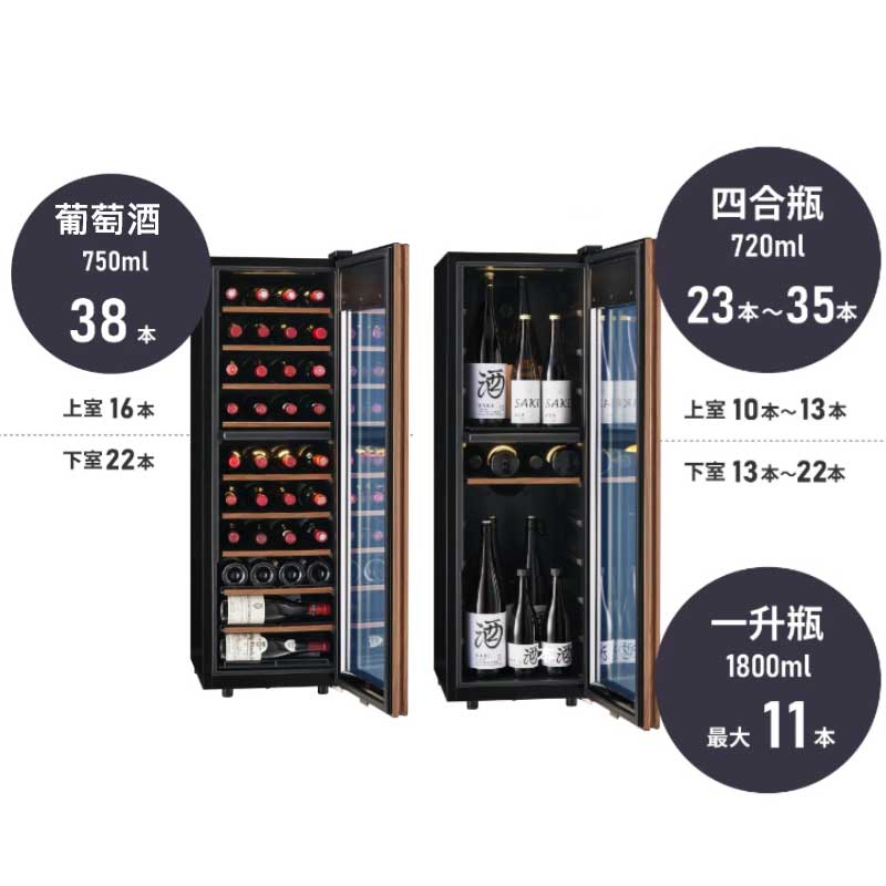 - 容量:約38瓶(標準瓶紅酒)/約11瓶(1L清酒)